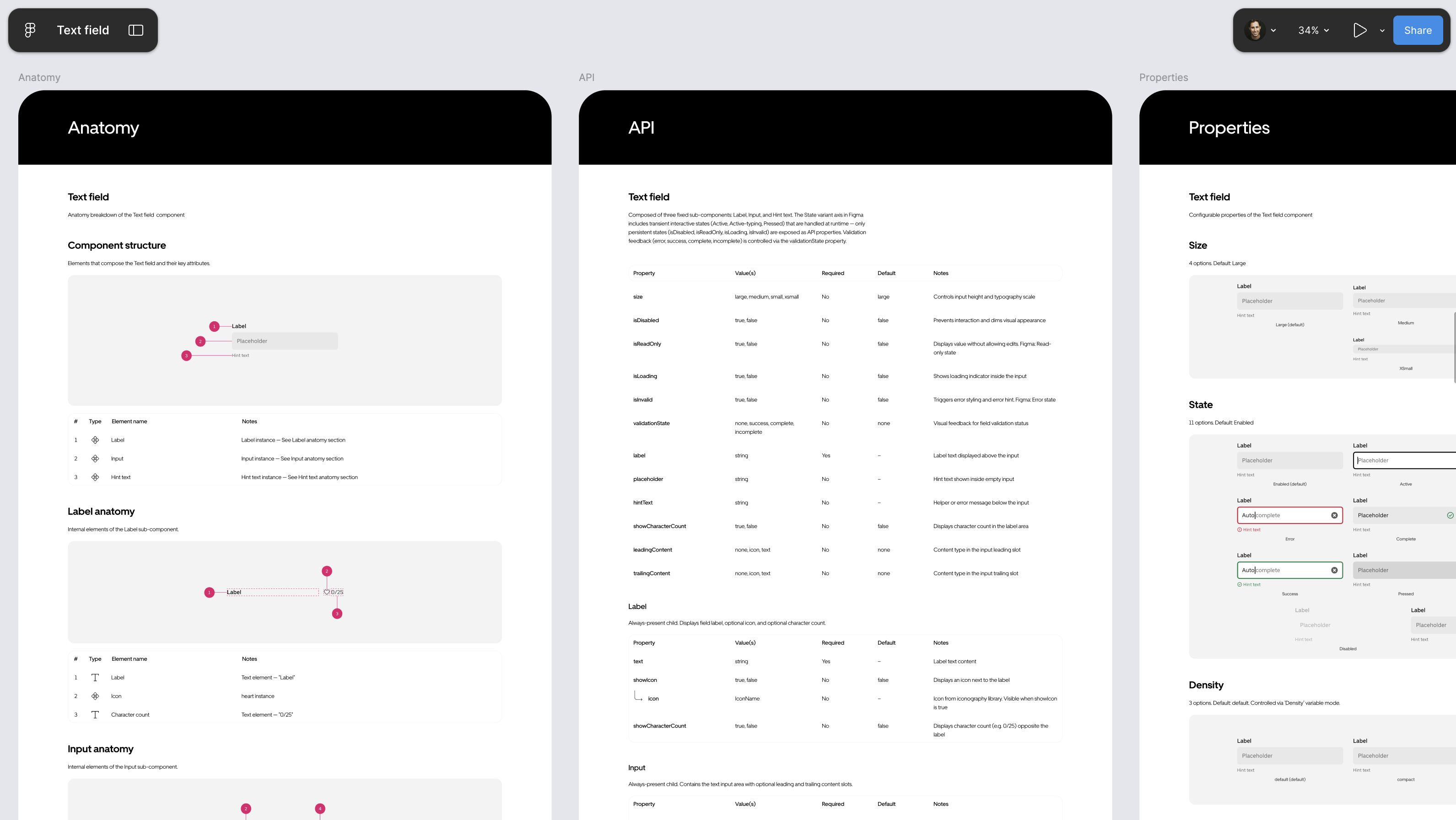 I’ve spent years building and teaching others how to manually create component specs. At Uber, the complexity compounded in different ways: seven implementation stacks, density variants across each, and strict accessibility requirements. The work compounds, but the process stays the same: a designer manually producing page after page of structured documentation in Figma.